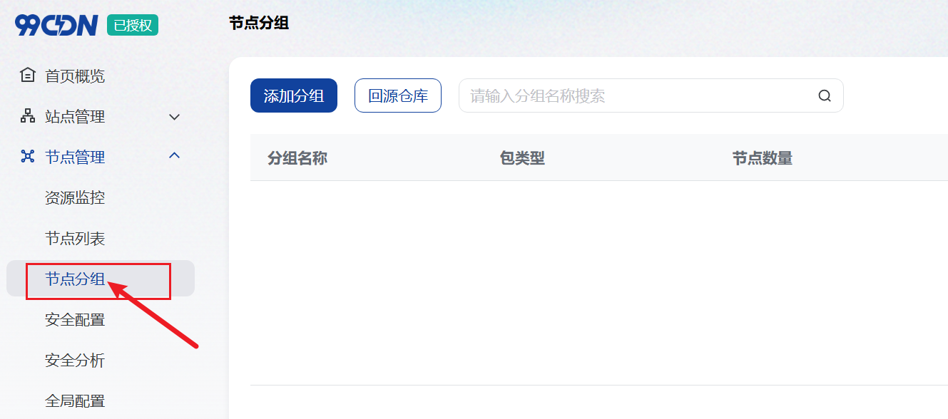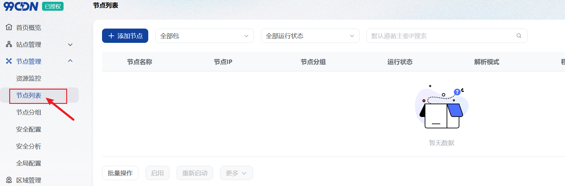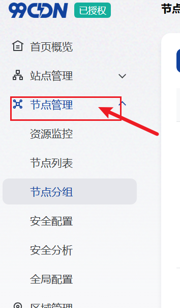 1、登录99CDN的控制面版点击节点管理,如下图: