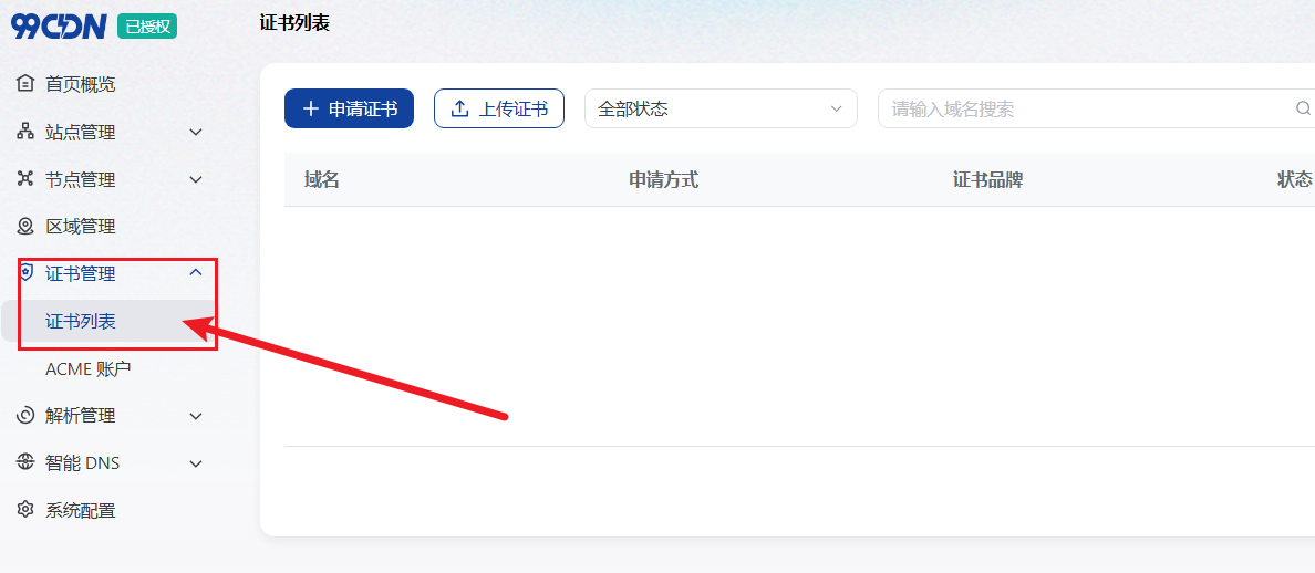 1、点击证书管理选择证书列表,如下图: