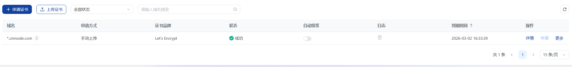 点击确认,如下图就表示证书上传好了: