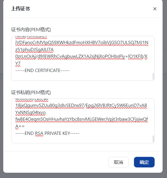 博主这边已经在海外云服务器 VMRack 申请了证书,就点击上传证书。如下图: