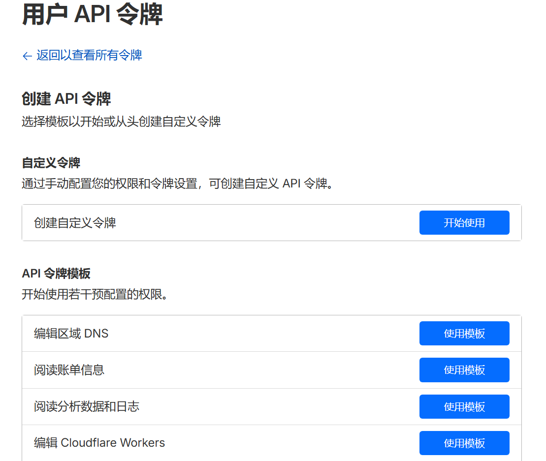 选择API令牌模板的第一个编辑区域DNS,点击使用模板,如下图: