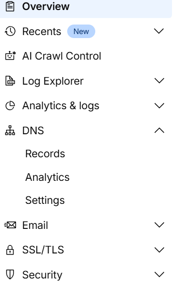 在CF上找到DNS点击进入找到Records点击进入(入下图)