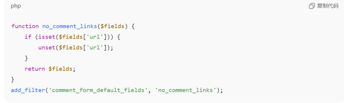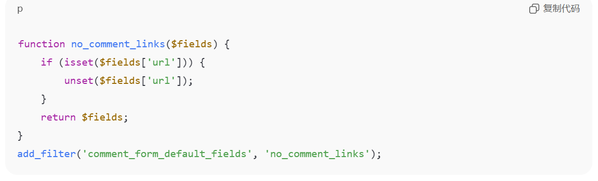垃圾评论往往包含网址,这些网址通常用于垃圾SEO或推广。通过删除评论表单中的url文字