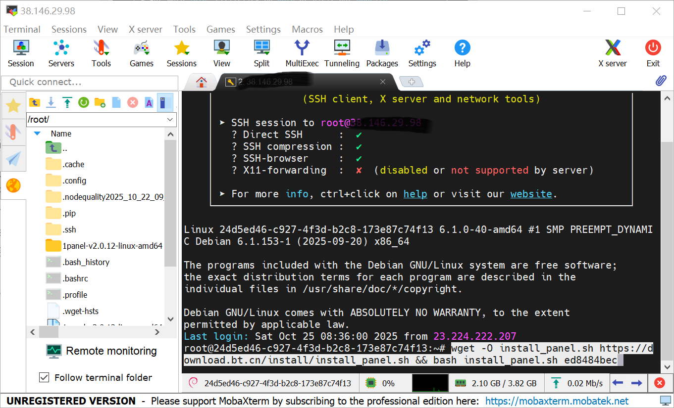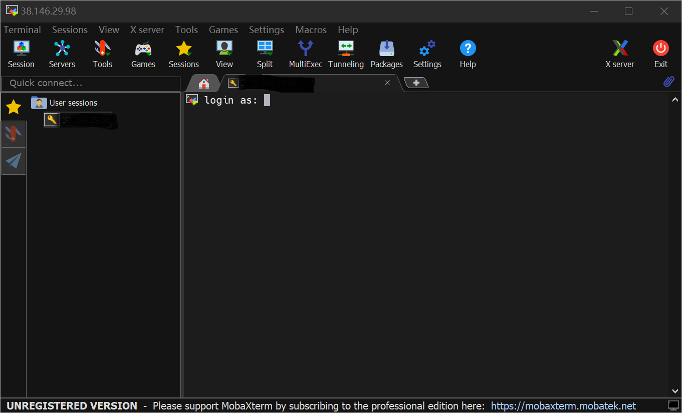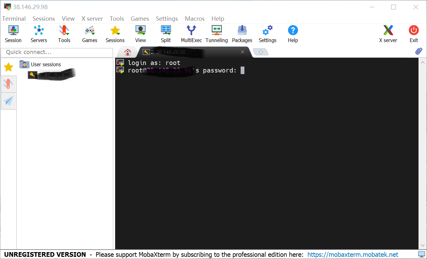 网络上有很多的SSH工具,可以更具自己的喜好去选择。我这边使用的是MobaXterm这个工具,相对于新手比较友好且可以选择免费的,对于新手来说下载免费的已经足够使用乐。如果不想下载工具或者实现麻烦的也可以直接用服务器商的SSH工具。