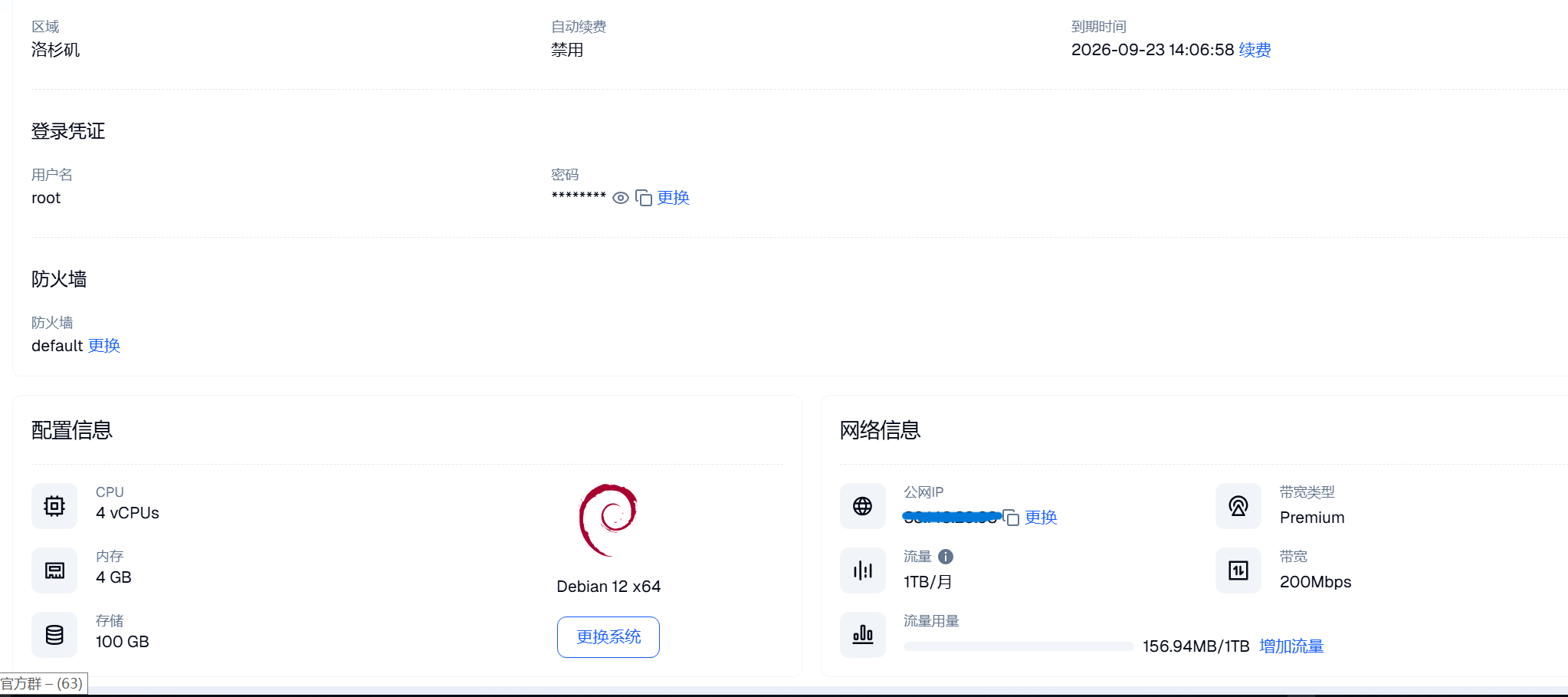 市面上有很多服务器厂商,大家可以根据自己的需求选择合适的服务商。博主个人推荐使用 VMRack,目前自己也主要在使用他们的产品。接下来,博主将以 VMRack 的服务器为例,讲解如何操作。选购并确认服务器后,首先要检查所购买服务器的 IP 地址和密码,接着确认服务器的操作系统,因为安装 1Panel 时需要根据不同的系统选择相应的安装方式。如下图。